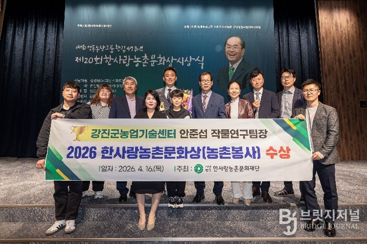 브릿지저널 김경미 기자 | 강진군은 한사랑농촌문화재단이 주관하는 ‘한사랑농촌문화상’ 농촌봉사 부문에서 강진군 농업기술센터 안준섭 작물연구팀장이 수상의 영예를 안았다고 20일 밝혔다.