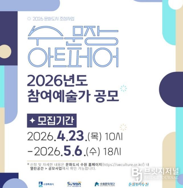 브릿지저널 김경미 기자 | 수원문화재단은 지역 예술가의 작품 판로 확대와 지속가능한 창작 활동 기반 마련을 위해 2026년 ‘수문장 아트페어’ 참여 예술가를 모집한다.