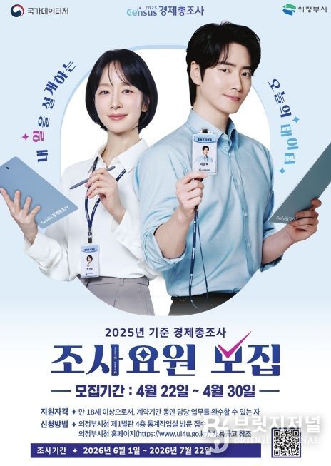 브릿지저널 김경미 기자 | 의정부시는 6월 1일부터 실시되는 ‘2025년 기준 경제총조사’의 원활한 추진을 위해 조사요원 77명을 모집한다.