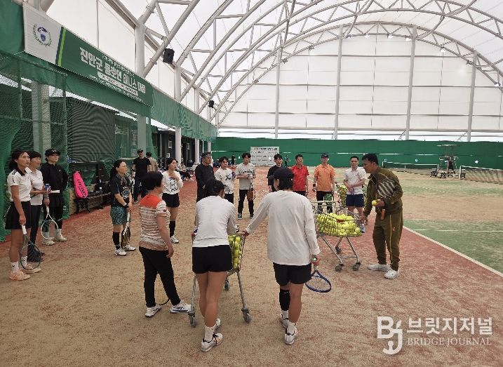 브릿지저널 윤나영 기자 | 진안군 테니스선수단(감독 조효익)은 지난 18일 진안군 다목적구장에서 관내 테니스 동호회원들과 함께 재능기부 레슨을 진행하며 교류의 시간을 가지는 화합의 장을 마련했다.