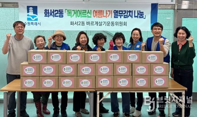 브릿지저널 김경미 기자 | 수원시 팔달구 화서2동 바르게살기운동위원회는 지난 17일, ‘독거어르신 여름나기 열무김치 나눔’에 참여해 지역 내 어려운 이웃을위한 따뜻한 나눔활동을 펼쳤다.
