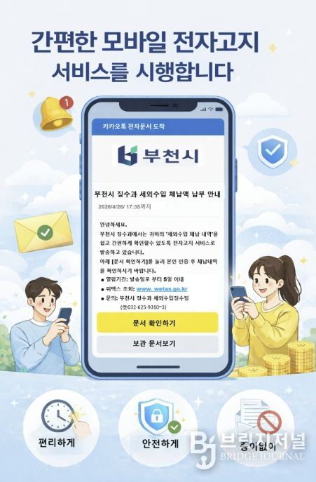 부천시 징수과장은 “모바일 전자고지 도입으로 고지서 전달의 정확성과 납부 편의가 높아질 것으로 본다”며 “앞으로도 시민 중심의 납세 서비스를 지속 확대하겠다”고 말했다.