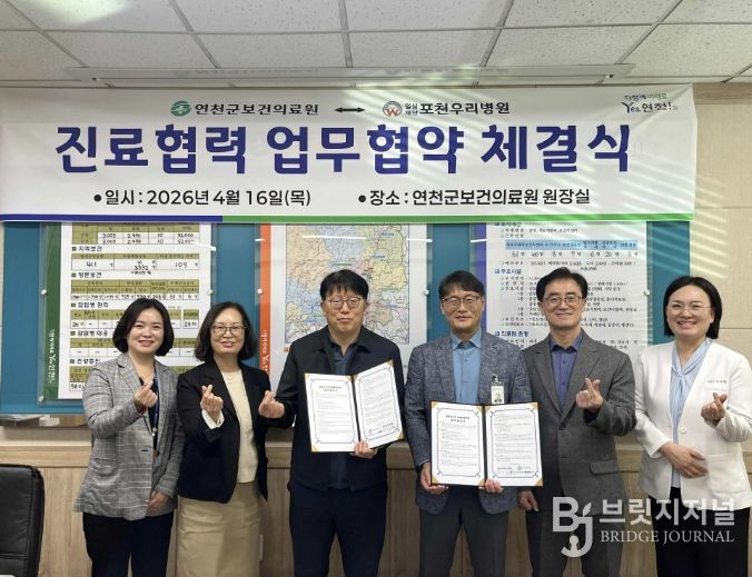 브릿지저널 김경미 기자 | 연천군보건의료원은 지난 16일 포천우리병원과 진료 협력 및 환자 연계 업무협약(MOU)을 체결했다.