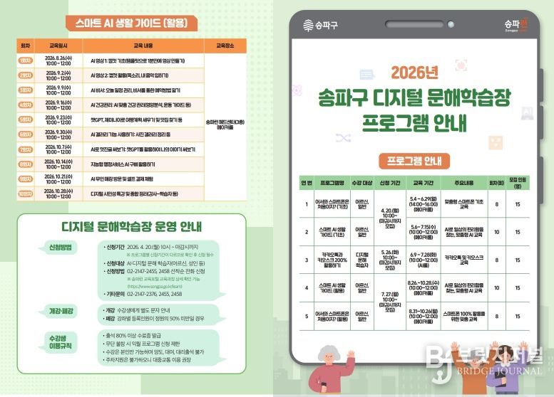 브릿지저널 김경미 기자 | 서울 송파구는 스마트폰과 AI 사용이 익숙하지 않은 주민을 위해 5월부터 ‘디지털 문해학습장’ 교육을 운영한다.