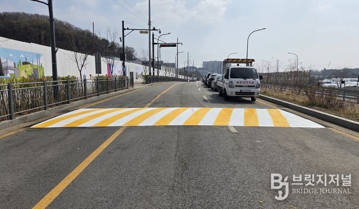 브릿지저널 김경미 기자 | 오산시는 가수초등학교 통학로 안전 확보를 위해 인근 우미린 레이크시티 아파트 공사장 진출입로 주변에 과속방지턱 4개소를 신설했다고 밝혔다.