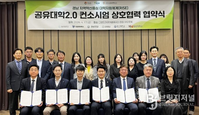 브릿지저널 김경미 기자 | 경상국립대학교 라이즈(RISE) 사업단 지역교육혁신센터는 4월 17일 창원 그랜드머큐어호텔에서 ‘공유대학2.0 컨소시엄 과제’ 참여대학 간 상호 협력 협약(MOU)을 체결했다.