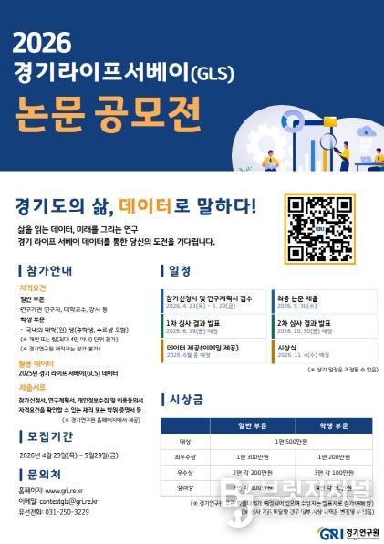 경기연구원은 이번 조사를 통해 확보한 대규모 데이터를 기반으로 데이터 중심의 과학적 행정을 뒷받침하고, 증거 기반 연구 역량을 한층 강화하는 데 주력할 방침이다. 연구 데이터의 지속가능성을 확보하고 창의적인 분석 아이디어를 통해 정책 활용도를 높이기 위해 ‘2026년 경기 라이프 서베이(GLS) 논문 공모전’을 개최할 예정이며, 이를 통해 도출된 제안과 분석 결과를 실질적인 정책 근거자료로 활용할 계획이다.