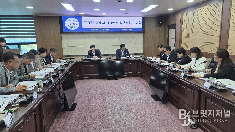 브릿지저널 김경미 기자 | 거제시는 20일 시청 소회의실에서 조직 내 적극행정 문화를 확산하고, 실천 의지를 다지기 위해 ‘2026년 거제시 적극행정 실행계획 보고회’를 개최했다.