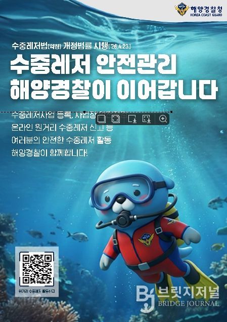 브릿지저널 김경미 기자 | 해양경찰청은 수중레저 사업장 증가와 이용객 증가에 「수중레저활동의 안전 및 활성화 등에 관한 법률」(약칭. 수중레저법)을 시행(4.23.)하며 수중레저 안전관리를 강화한다고 밝혔다.