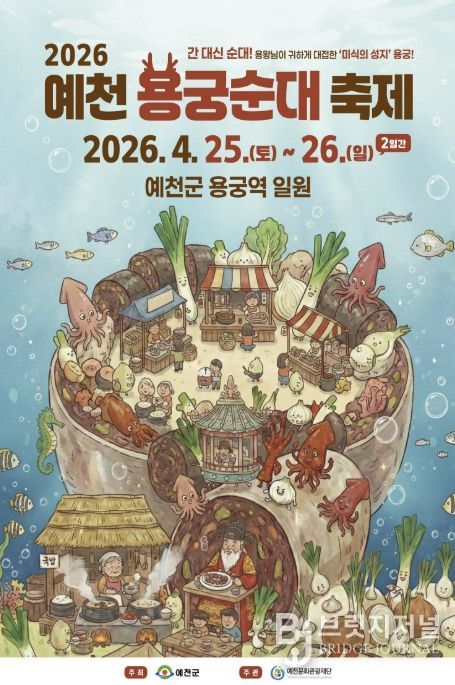 브릿지저널 정보영 기자 | 예천군의 대표 향토 먹거리 축제인 '2026 예천 용궁순대축제'가 오는 4월 25일부터 26일까지 이틀간 용궁역 일원에서 화려하게 펼쳐진다.