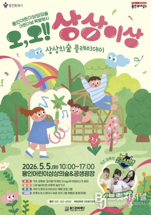 브릿지저널 김경미 기자 | 용인문화재단은 오는 5월 5일 어린이날을 맞아 용인어린이상상의숲에서 2026년 어린이날 특별행사 ‘오, 오! 상상이상’을 개최한다고 밝혔다.