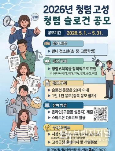 브릿지저널 김경미 기자 | 고성군은 관내 초·중·고등학생을 대상으로 「2026년 고성군 청렴 슬로건 공모전」을 오는 5월 말까지 실시한다.