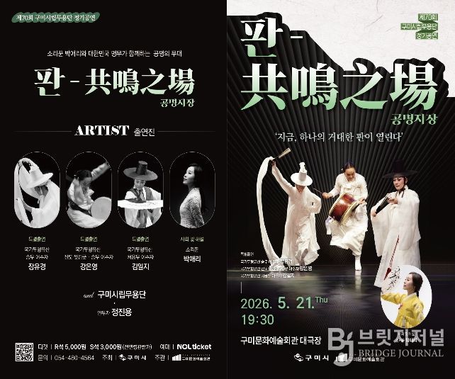 브릿지저널 정보영 기자 | 구미시는 5월 21일 오후 7시 30분, 구미시문화예술회관 대공연장에서 ‘제70회 구미시립무용단 정기공연 '판-共鳴之場공명지장'’을 개최한다.