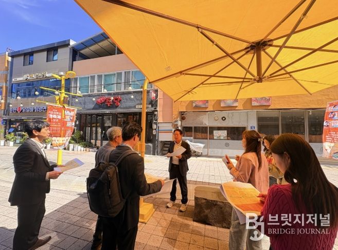 브릿지저널 정보영 기자 | 문경시는 점촌원도심상권 점촌역 방향 200여 미터 구간에 ‘닻별 거리’ 조성 속도를 높이고 있다. 노란색 간판과 어닝을 새로 설치하고, 상징 조형물과 조형 벤치 등을 배치하며, 은하수 파고라 70미터 조명으로 거리를 화려하게 꾸민다.