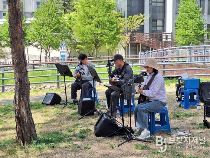 브릿지저널 김경미 기자 | 의정부시 송산3동행정복지센터는 4월 18일 민락 두물머리쉼터에서 주민 힐링을 위한 ‘통기타 버스킹 공연’을 개최했다.