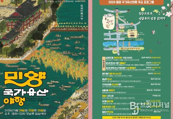 브릿지저널 김경미 기자 | 경남 밀양시가 주최하고 밀양시문화도시센터가 주관하는 ‘2026 밀양 국가유산 야행’이 오는 4월 24일부터 26일까지 3일간 영남루 및 밀양관아, 밀양강 일원에서 펼쳐진다.