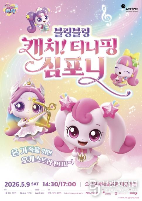 브릿지저널 김경미 기자 | 오산문화재단은 어린이날을 맞아 온 가족이 함께 즐길 수 있는 오케스트라 공연 ‘블링블링 캐치! 티니핑 심포니’를 선보인다고 밝혔다. 이번 공연은 인기 애니메이션 ‘캐치! 티니핑’ 시리즈의 OST를 오케스트라 라이브로 감상할 수 있는 무대로, 어린이뿐 아니라 가족 단위 관람객들에게 특별한 문화 경험을 제공할 예정이다.