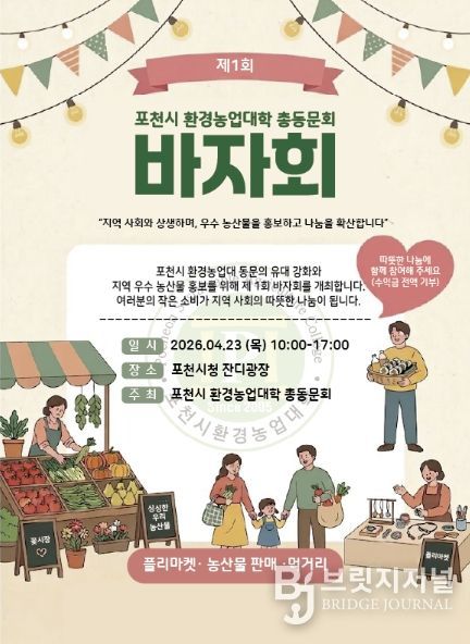 브릿지저널 김경미 기자 | 포천시 환경농업대학 총동문회가 오는 4월 23일, 지역사회와의 상생과 나눔을 실천하기 위한 ‘제1회 나눔 바자회’를 개최한다.