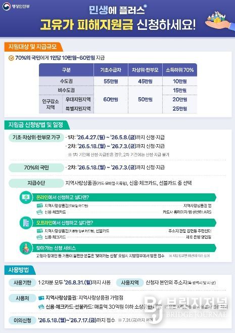 이번 지원금은 급등한 에너지 가격과 물가 상승으로 인해 실질 소득이 감소한 서민 경제를 보호하기 위한 조치로, 국민의 70%를 대상으로 소득 계층별·지역별로 차등 지급될 예정이다.