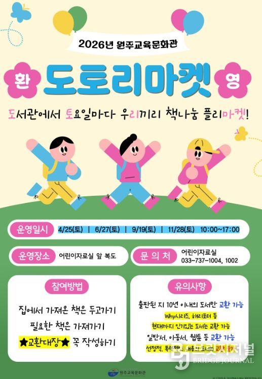 브릿지저널 윤나영 기자 | 원주교육문화관은 4월 25일부터 책나눔 ‘도토리마켓’을 운영한다.
