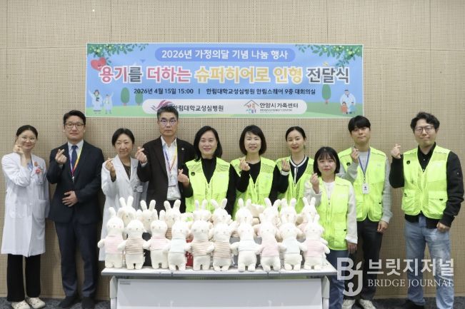 브릿지저널 김경미 기자 | 안양시 가족센터는 가정의 달을 맞아 지난 15일 한림대학교성심병원을 방문해 치료 중인 환자들을 위한 ‘슈퍼히어로 인형’ 56개를 전달했다고 21일 밝혔다. 전달된 인형은 5월 중 환자들에게 순차적으로 전달될 예정이다.
