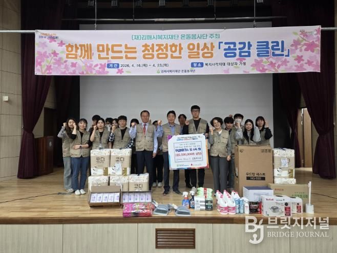 브릿지저널 김경미 기자 | (재)김해시복지재단 직원들의 자발적인 참여로 운영되는 온돌봉사단은 지난 16일 김해시 여성센터 대강당에서 신규 사회공헌활동 '함께 만드는 청정한 일상, 공감 클린'의 시작을 알리는 기념행사를 개최했다.