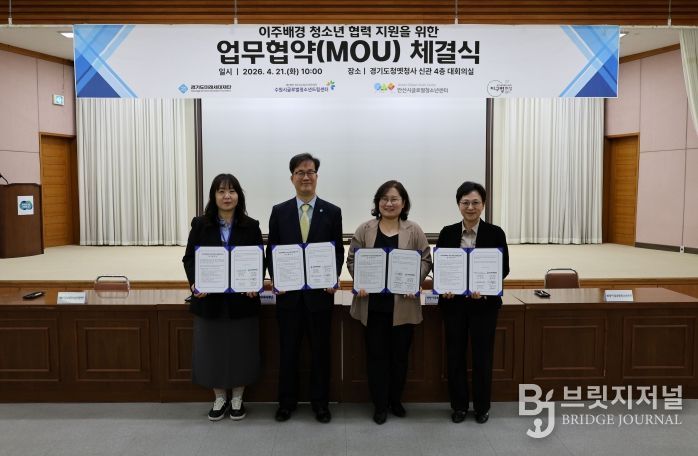 브릿지저널 김경미 기자 | 경기도미래세대재단은 21일 수원시 팔달구 옛 경기도청사에서 수원시글로벌청소년드림센터, 안산시글로벌청소년센터, 화성시글로벌청소년센터와 이주배경 청소년 지원을 위한 업무협약을 체결했다.