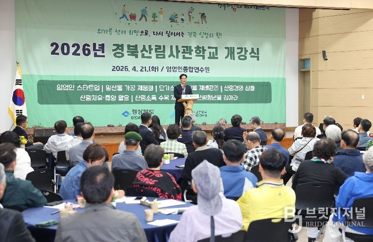 브릿지저널 정보영 기자 | 경상북도는 4월 21일, 산림조합중앙회 임업인종합연수원에서 교육생 등 160명이 참석한 가운데 ‘2026년 경북산림사관학교 개강식’을 개최했다.