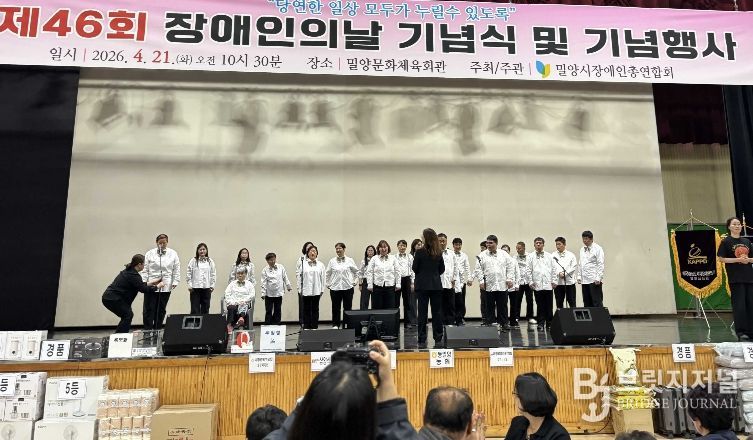 브릿지저널 김경미 기자 | 밀양문화관광재단은 21일 밀양문화체육회관에서 열린 ‘제46회 장애인의 날 기념식’에서 발달장애인 합창단 ‘이루다 합창단’의 올해 첫 공연을 선보였다고 밝혔다.