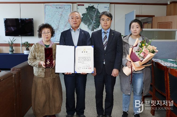 브릿지저널 김경미 기자 | 양산시는 21일 6.25전쟁에 참전해 공을 세운 故 권오수 하사의 자녀 권용득씨(평산동 거주)에게 국방부장관을 대신해 훈장증과 화랑무공훈장을 전수했다.