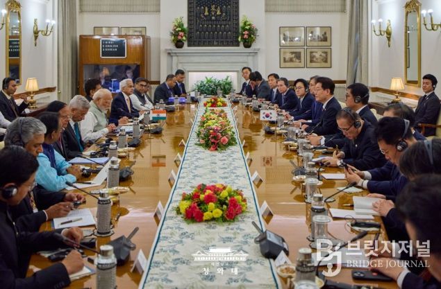 브릿지저널 김경미 기자 | 청와대는 이재명 대통령의 인도 국빈 방문 성과와 관련 "우리 글로벌 사우스 외교의 본격적인 가동을 알리는 계기이자 14억 인구를 바탕으로 고속 성장 중인 인도와 새로운 협력 모멘텀을 창출하고 미래지향적이고 전략적인 분야로 양국 간 협력의 지평을 확대하는 계기가 됐다"고 평가했다.