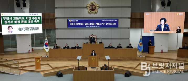 브릿지저널 김경미 기자 | 경기도의회 여성가족평생교육위원회 김동희 부위원장(더불어민주당, 부천6)은 제389회 경기도의회 임시회 제1차 본회의 5분 자유발언을 통해 부천시 고등학교 지망 추첨제 운영 과정에서 발생하고 있는 원거리 배정 문제를 지적하고 제도 개선을 강력히 촉구했다.