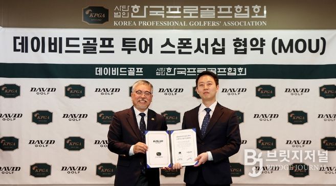 브릿지저널 김경미 기자 | 4월 21일(화) 오전 11시, 경기도 성남시에 있는 KPGA 빌딩(10층)에서 KPGA 챌린지투어의 새로운 타이틀 스폰서 조인식이 열렸다. 이날 조인식에는 데이비드골프 구건우 대표와 ㈜한국프로골프투어(KPGT) 김원섭 대표이사가 참석했다.