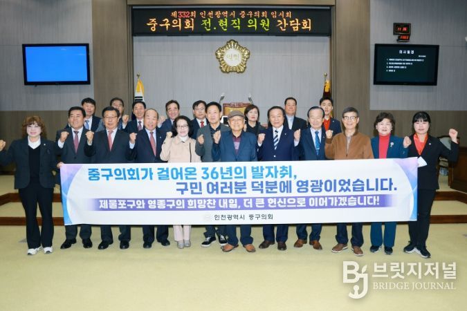 브릿지저널 김경미 기자 | 인천 중구의회는 21일, 제332회 임시회 개회를 맞아 역대 의원들을 초청하여 36년간의 의정 성과를 되돌아보고 향후 행정체제 개편에 대비한 고견을 청취하는 간담회를 개최했다.