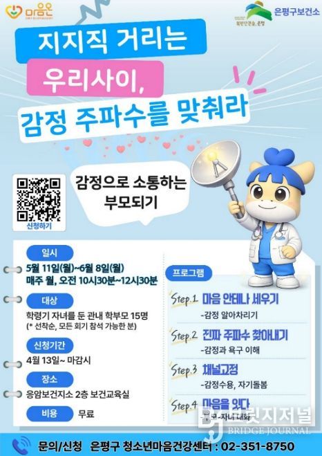 브릿지저널 김경미 기자 | 서울 은평구는 부모 집단상담 프로그램 ‘감정으로 소통하는 부모 되기 - 지지직거리는 우리 사이, 감정 주파수를 맞춰라’를 운영한다고 밝혔다.