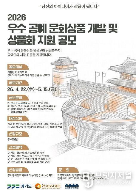 브릿지저널 김경미 기자 | 한국도자재단이 ‘2026 공예 문화상품 개발 및 상품화 지원 사업’을 본격 추진한다고 22일 밝혔다.