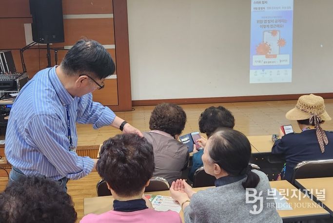 ‘스마트폰 보안관’은 성남 지역 노인기관 75개소를 찾아가 스마트폰 보안점검을 실시해 악성앱을 차단하고 보이스피싱 예방을 위한 인식 개선 활동을 하는 경기도 시범 사업이다.