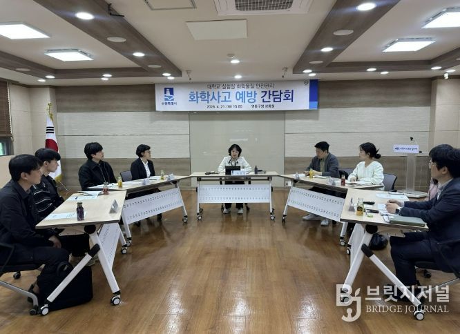 브릿지저널 김경미 기자 | 수원특례시는 21일 영통구청 상황실에서 관내 대학교 안전관리자들과 ‘연구실험실 화학사고 예방 간담회’를 열고, 사고 예방·대응 방안을 논의했다.