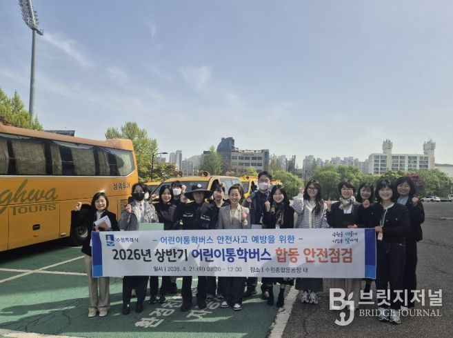 브릿지저널 김경미 기자 | 수원특례시는 21일 수원종합운동장 주차구역에서 수원 장안·권선·팔달·영통경찰서, 한국교통안전공단과 함께 ‘2026년 상반기 어린이통학버스 합동 안전점검’을 했다.