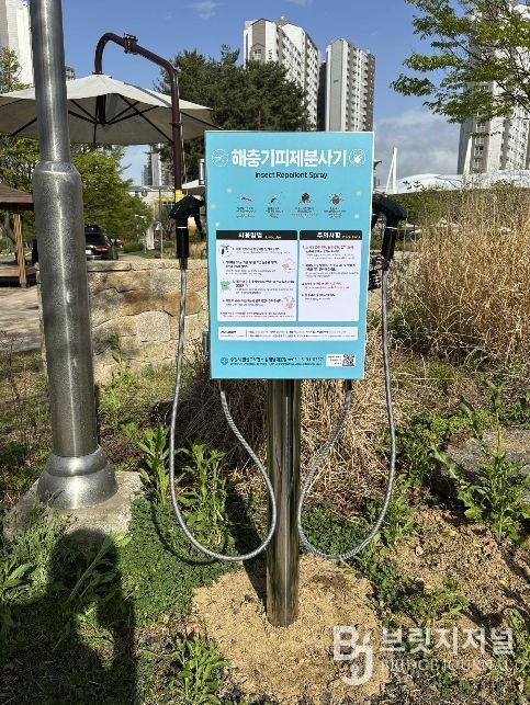 브릿지저널 김경미 기자 | 수원시 권선구보건소가 기온 상승과 야외 활동 증가 시기를 맞아 20일 관내 주요 공원과 산책로에 해충기피제 분사기를 확대 설치했다.