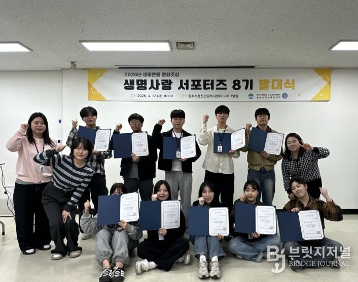 브릿지저널 윤나영 기자 | 원주시자살예방센터는 지난 17일 자살 예방과 생명 존중 문화 확산을 위한 ‘제8기 생명사랑 서포터즈’ 발대식을 개최했다.