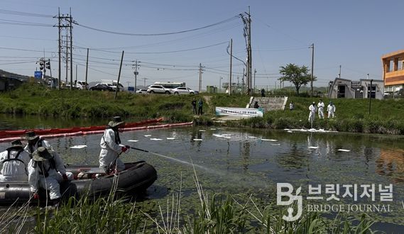 브릿지저널 김경미 기자 | 김해시는 21일 오후 2시 전하동 김해맑은물순환센터 인근에서 상반기 수질오염사고 대응 방제훈련을 실시했다.