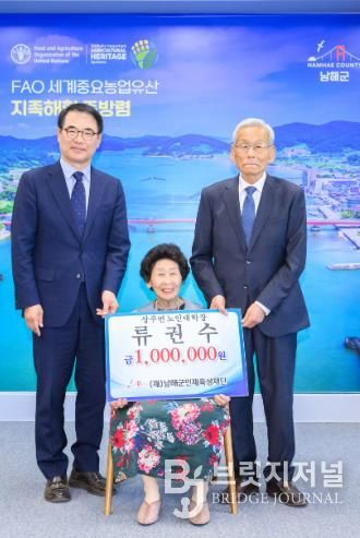 브릿지저널 김경미 기자 | (재)남해군인재육성재단은 올해 구순을 맞은 류권수 상주면 노인대학장이 100만 원의 인재육성기금을 기탁했다고 밝혔다.