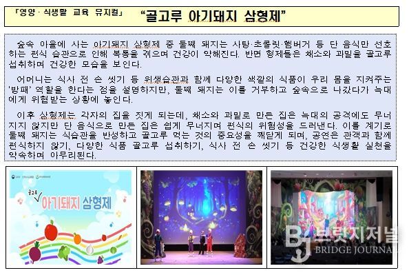 참고로 교육부는 현장소통단의 의견을 수렴하여, 2024년부터 유아의 눈높이에 맞춘 교육용 뮤지컬을 개발해 찾아가는 공연 사업을 추진하고 있다. 올해도 식문화 이해와 긍정적인 식습관 형성을 주제로 하는 새로운 뮤지컬을 개발하여 현장 교육을 지원할 계획이다.