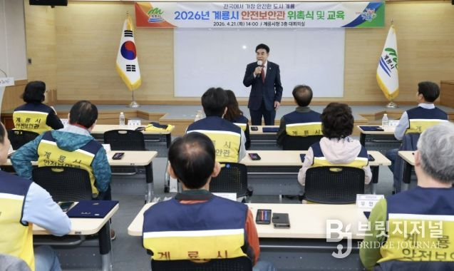 브릿지저널 정보영 기자 | 충남 계룡시는 21일 시청 대회의실에서 ‘2026년 계룡시 안전보안관 위촉식’을 열고 안전보안관 27명을 위촉했다.