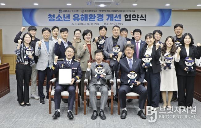 브릿지저널 김경미 기자 | 수원시 권선구는 지난 20일, 수원권선경찰서, 법무부 청소년 범죄예방위원 권선지구위원회와 함께 청소년 유해환경 개선을 위한 업무협약을 체결하고, '아름드리 동행' 장학금 전달식을 개최했다.