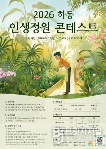 브릿지저널 김경미 기자 | 하동군이 지역 내 아름다운 정원을 발굴하고, 일상생활 속 정원 문화를 확산하기 위한 ‘2026년 제2회 하동 인생정원 콘테스트’를 5월 8일까지 진행한다.