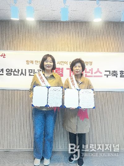 브릿지저널 김경미 기자 | 양산시 여성단체협의회와 양산시 복지국은 여성거점공간 지난 21일‘이어ZOOM’에서 민·관 청렴거버넌스 구축 협약식을 체결했다.