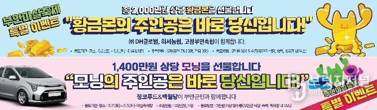 브릿지저널 윤나영 기자 | 부안군 대표축제추진위원회(위원장 김종문)는 오는 5월 2일부터 5일까지 4일간 부안 해뜰마루 지방정원에서 개최되는 제13회 부안마실축제에서 ‘황금몬을 선물합니다’와 ‘기아 모닝 차량 추첨’ 특별 이벤트 프로그램을 운영한다고 밝혔다.