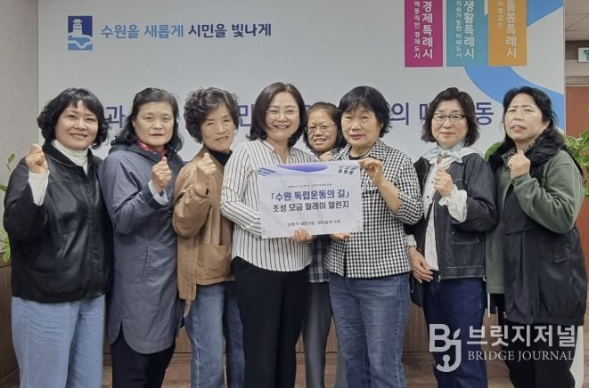 브릿지저널 김경미 기자 | 수원시 영통구 매탄3동은 지난 21일, 매탄3동 새마을부녀회가 ‘수원 독립운동의 길 조성 모금 릴레이’에 전 회원 동참 의사를 밝히며 뜻깊은 참여를 이어갔다고 밝혔다.
